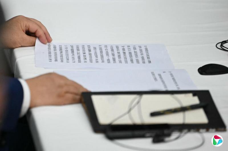 中美两国元首会晤时,桌上放着中国国家主席习近平的讲稿副本。(法新社)