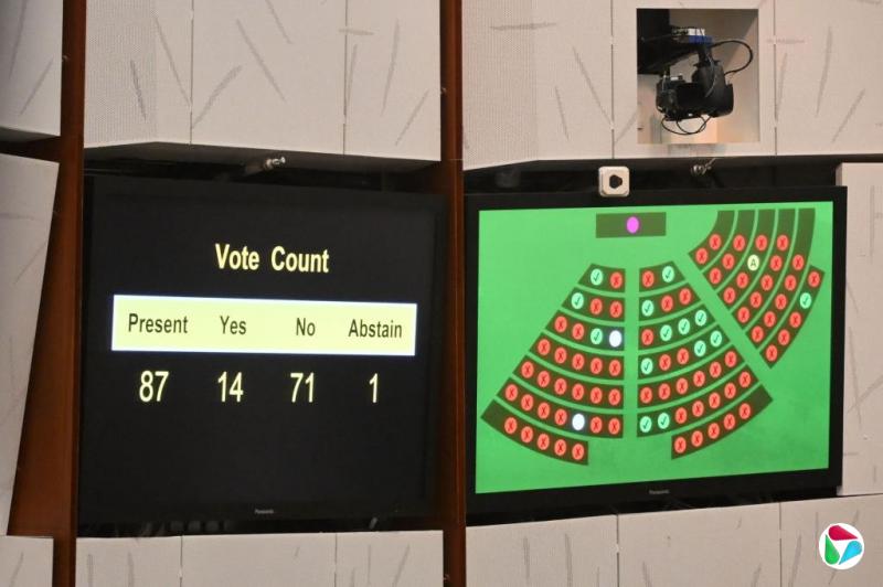 当天出席会议的87名立法会议员中,71人投反对票,14人赞成,一人弃权,立法会主席梁君彥按惯例没有投票,《同性伴侣关系登记框架条例草案》最终未能通过二读。