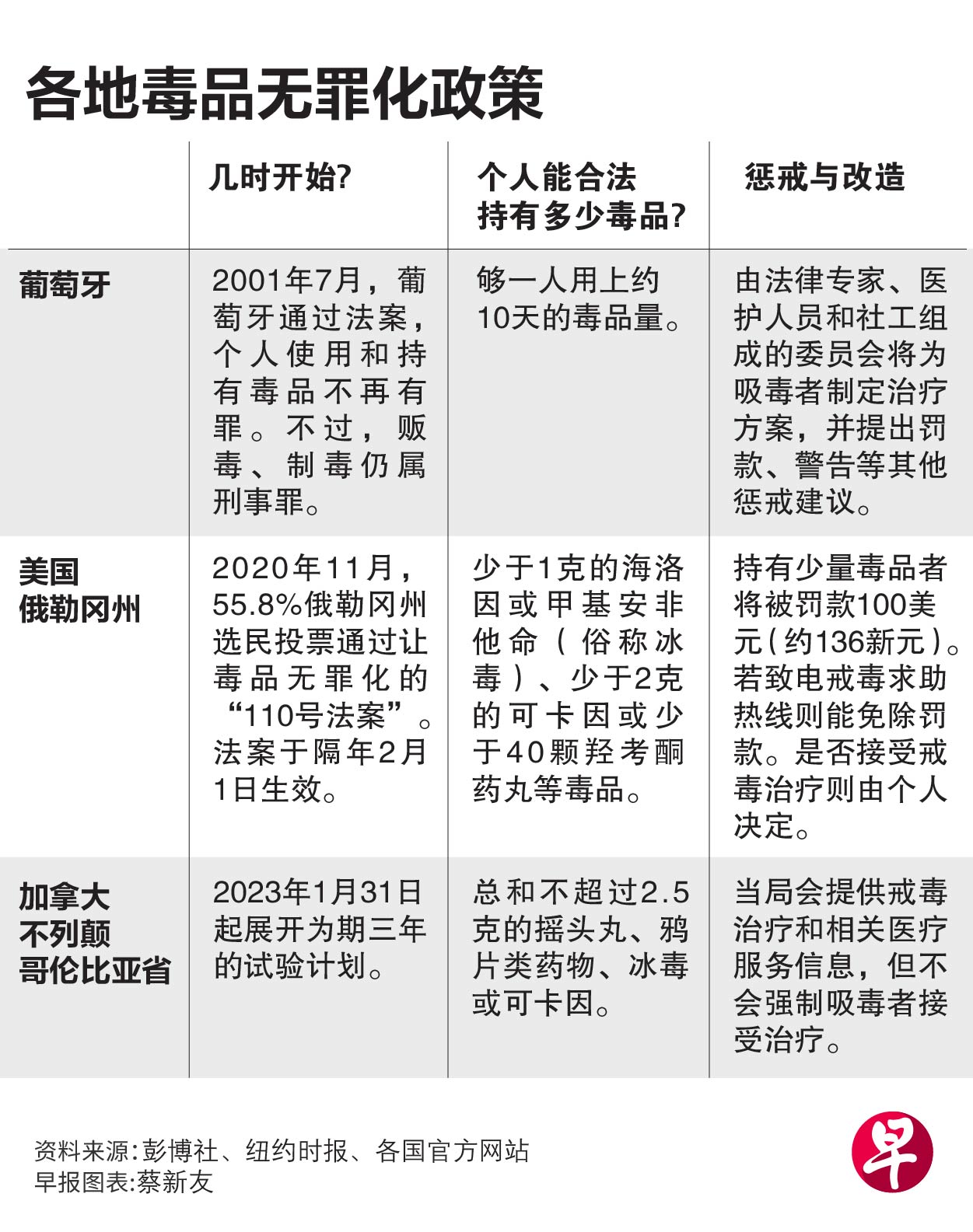 越来越多国家和地区在探讨试行毒品无罪化,希望以更人道的方式应对嗜毒问题,而不是一味惩罚。然而,葡萄牙、美国俄勒冈州和加拿大的不列颠哥伦比亚省,这三个在不同时期推行毒品无罪化的国家和地区,毒品问题却有所加剧,“温柔”的政策未达预期成效,部分民众开始后悔当初的决定。