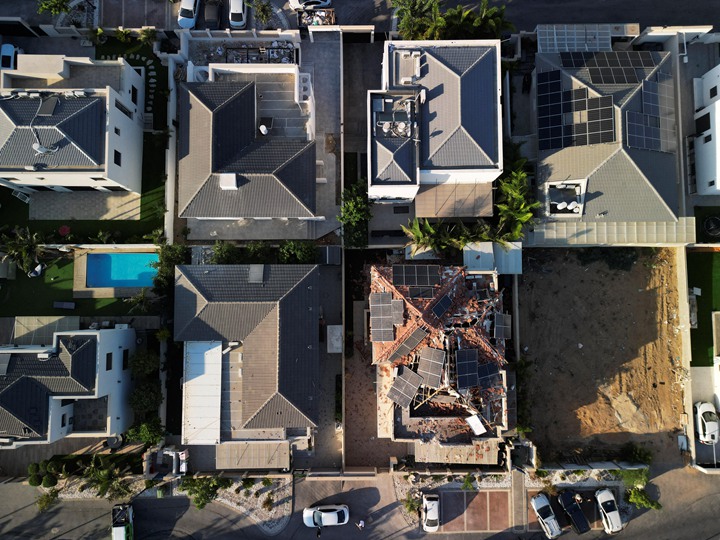 10月15日,以色列和哈马斯继续互相炮击。在以色列南部的地中海城市亚实基伦(Ashkelon),一栋洋房被哈马斯导弹击中,屋顶崩裂损毁。(路透社)