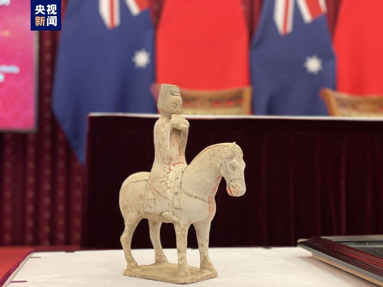 澳大利亚美术馆向中国返还的文物骑马俑。(央视新闻)