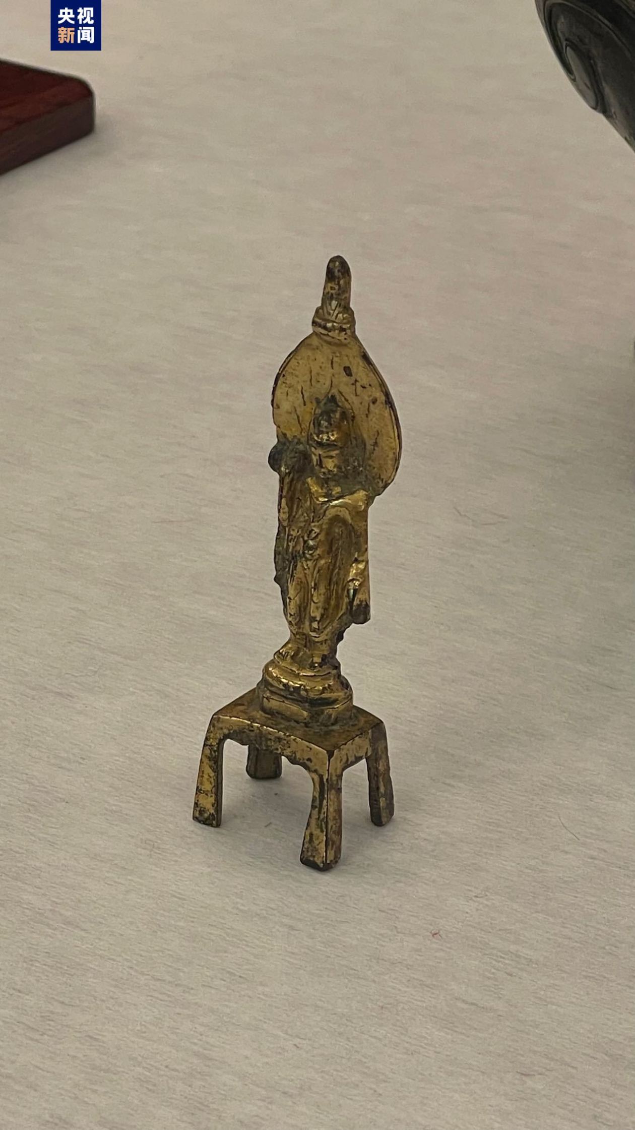 澳大利亚美术馆向中国返还的文物鎏金观音铜像,可追溯到唐代甚至北朝。(央视新闻)