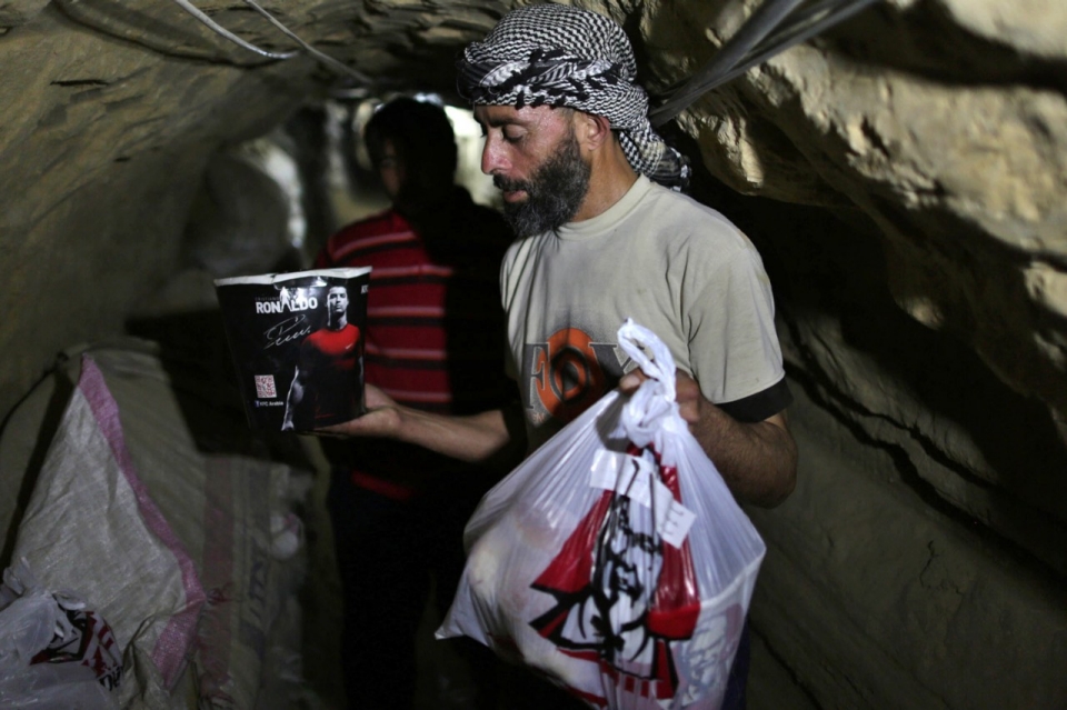 从隧道历史来看,很多人以为这是哈马斯的“杰作”,但加沙地区的隧道早在1990年代末期已经存在,主要用于加沙与外界的货物和武器走私。到底是谁先挖的地道已无从考究,但地道中的商品可谓包罗万象,只有外界想不到,没有他们送不到,甚至包括肯德基外卖。