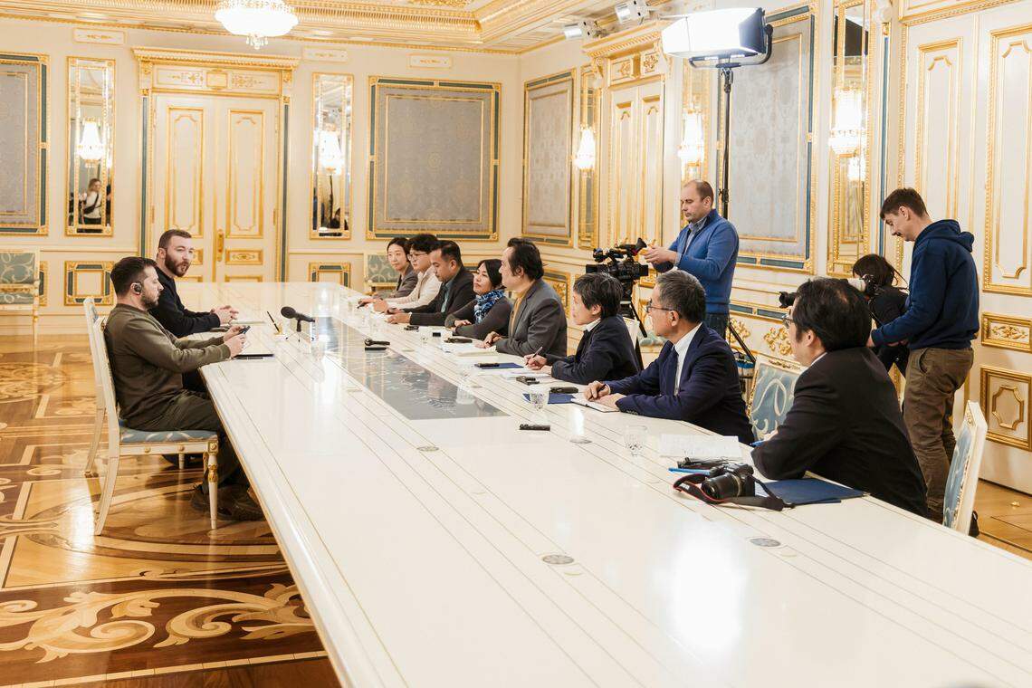 乌克兰官方安排亚洲七个国家:日本、韩国、蒙古、印度尼西亚、新加坡、泰国和柬埔寨的媒体进行采访。泽连斯基在逾一小时访问中,回答关于俄乌停火谈判、前线僵局、北京的角色、朝鲜供俄武器、以哈冲突等问题。