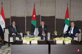 约旦国王阿卜杜拉二世、埃及总统塞西和巴勒斯坦总统阿巴斯星期三(1月10日)在约旦南部城市亚喀巴(Aqaba)举行会谈,他们表明必须继续施加压力,阻止以色列继续侵略加沙地带和保护无辜民众。他们反对以色列任何驱逐约旦河西岸和加沙巴勒斯坦人的计划,以及反对任何把约旦河西岸与加沙地带分开的企图。