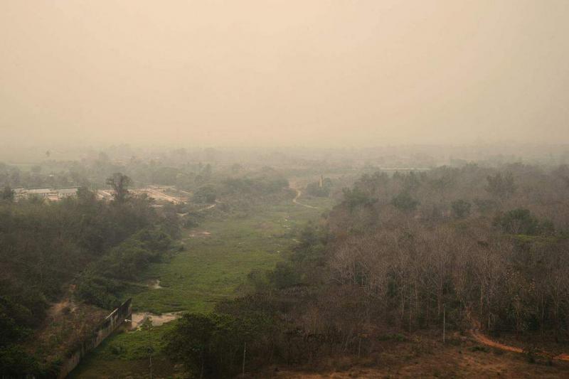 环境问题环环相扣,气候变化导致气温上升,环境变得更干燥,容易引发野火,造成空气污染。3月16日,泰国清迈的悬浮颗粒PM2.5浓度为每立方米224微克,是世界卫生组织建议水平的20倍以上。(法新社)