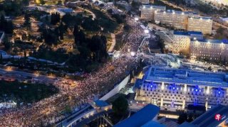 在内坦亚胡举行新闻发布会之时,成千上万的以色列人正在耶路撒冷举行抗议示威,要求内坦亚胡下台,举行新的选举。