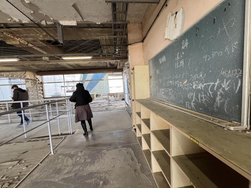 除了核电站,福岛唯一没有被15米高海啸彻底摧毁的建筑——浪江地带的请户小学,如今也成了展区,游客可自行参观。距离核电站仅五公里的请户小学,当时只是局部被毁,而事发时学校所有学生安全撤离,是这场灾难中少有的一个安慰。校舍的二楼至今保留原貌,被力量无限大的海啸击毁的痕迹历历在目。