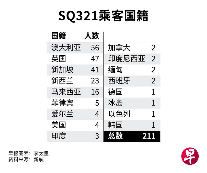 新加坡外交部也发出文告说,已同新航和本地与泰国的有关部门协调,为SQ321班机的乘客提供援助。新加坡驻曼谷大使馆的人员正在素万那普机场和医院,为受影响国人和他们的家属提供领事援助。