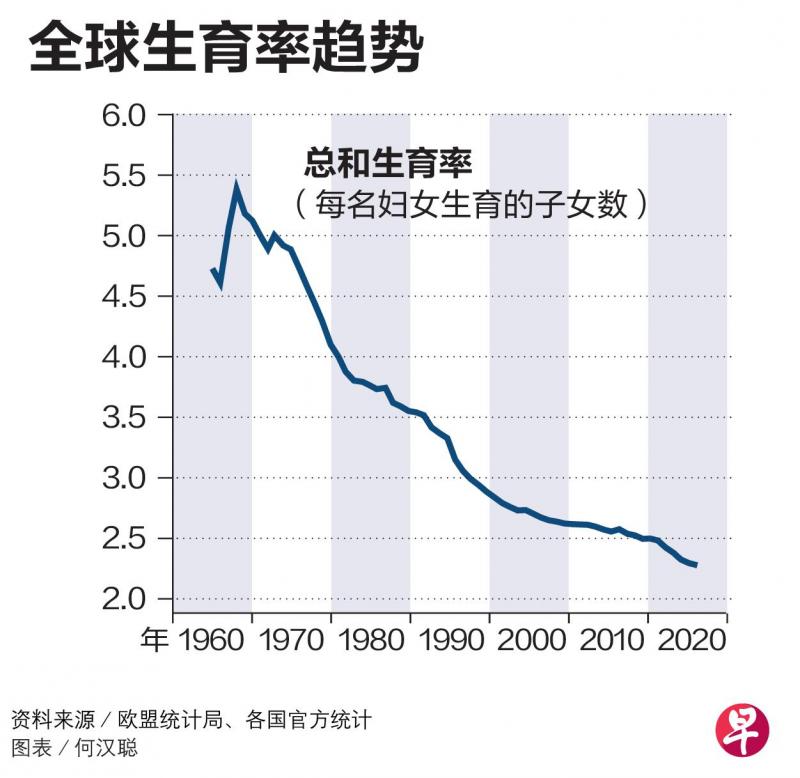 日本和新加坡的少子化问题也很严重。新加坡去年的整体生育率仅为0.97,首次跌至1.0以下;日本去年的新生儿人数则连续第八年减少,至75万8631个,为1899年日本开始收集出生率数据以来的最低纪录。日本首相岸田文雄形容,低生育率是日本面临的最大危机。