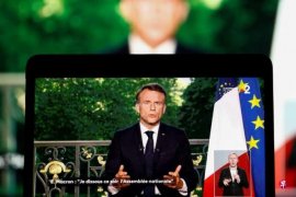 马克龙向全国发表电视讲话说,欧洲议会选举结果“对于捍卫欧洲的政党来说不是一个好结果”。根据宪法赋予总统的权力,他决定将国民议会的未来交给选民通过投票来决定,为此决定解散国民议会,并于6月30日和7月7日举行国民议会选举的两轮投票。