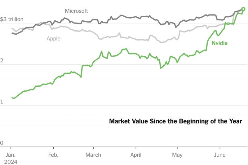 周二,英伟达的股价上涨了3.6%,市值升至3.34万亿美元。微软和苹果双双下跌,收盘落后于这家硅谷芯片制造商。