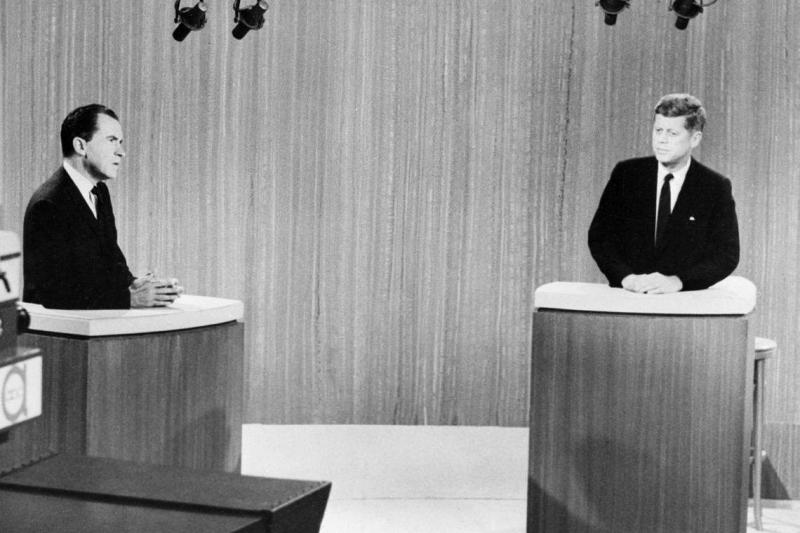 美国总统候选人进行电视辩论的传统可追溯到1960年。当时的民主党参议员肯尼迪和共和党副总统尼克逊在没有现场观众的情况下进行了四场电视直播的辩论。首场辩论前的民调显示,对外交政策较为熟悉的尼克逊领先肯尼迪,但肯尼迪最终在大选中以微弱优势获胜,许多人归功于肯尼迪在电视辩论中的较出色形象。之后的三届总统选举没有举行候选人辩论,但从1976年起每一届都会进行二到三次辩论。