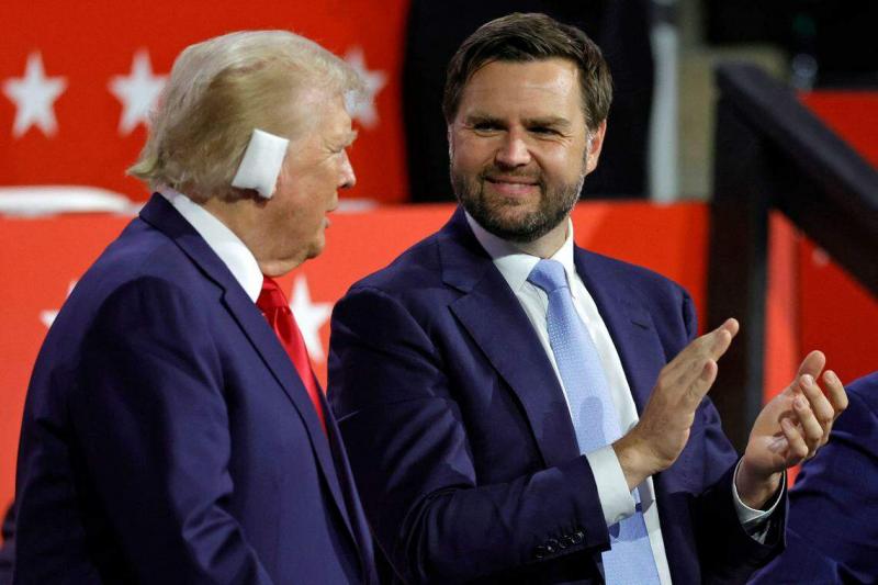 特朗普(左)7月15日在自家社媒平台宣布,共和党俄亥俄州参议员万斯(右)是他的副总统人选。(法新社)