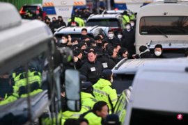 韩联社报道,韩国时间星期五早上7时30分左右(新加坡时间星期五早上6时30分左右),根据警方非正式统计,600多名尹锡悦的支持者在总统官邸附近举行集会,誓言要阻止尹锡悦被拘。为防止对峙升级,警方已部署45个机动部队,每队60人和2700多名警力,还有135辆警察机动部队大巴在现场待命。
