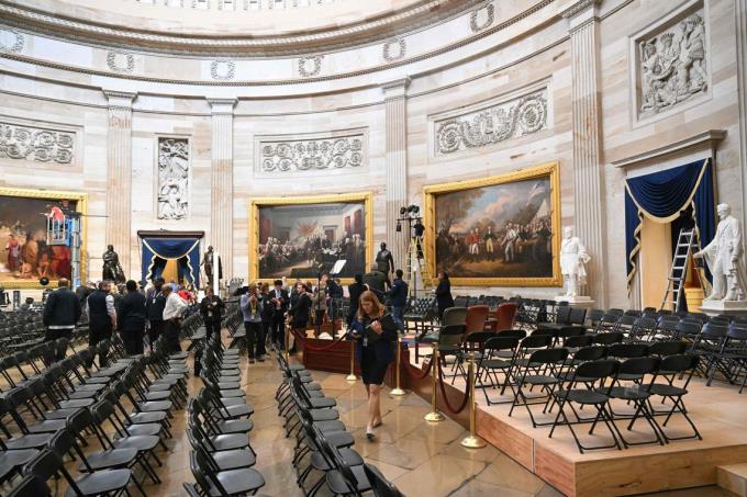 近年来,典礼一般会在美国国会大厦西侧的广场上搭建临时平台进行。然而,今年由于天气预报显示就职当天气温极低,特朗普的就职典礼将转移至国会大厦的圆形大厅内举行。