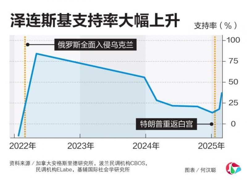 没有外交政策经验的英国首相斯塔默,则因在乌克兰问题的谈判中展现出一国之首的风范,支持率上升六个百分点。分析认为,在一系列密集的会谈中,斯塔默成功在特朗普和泽连斯基之间寻求平衡,带领英国重新回到国际外交的核心舞台。