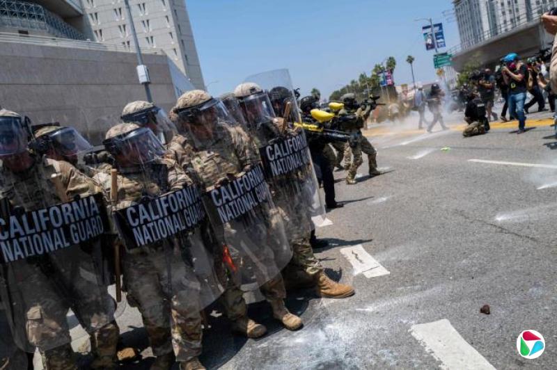 (洛杉矶综合电)美国总统特朗普不顾加利福尼亚州州长和洛杉矶市长的反对,直接通过总统备忘录调动2000名国民警卫队人员进驻洛杉矶,分析人士指出,这目前看来主要是在作秀,意在营造政府强硬的印象。然而,在这一敏感时刻,预备役军人的出现可能会加剧紧张局势,甚至成为引发政府采取更激进行动的导火线。