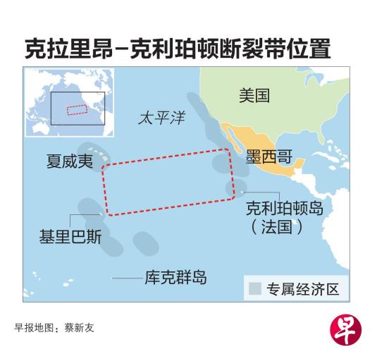中国如今已获得海管局颁发的五张海底勘探许可证,数量为各国之冠,其中三张是在墨西哥和夏威夷之间、位于太平洋的克拉里昂—克利珀顿断裂带(Clarion-Clipperton Zone,简称CCZ)。
