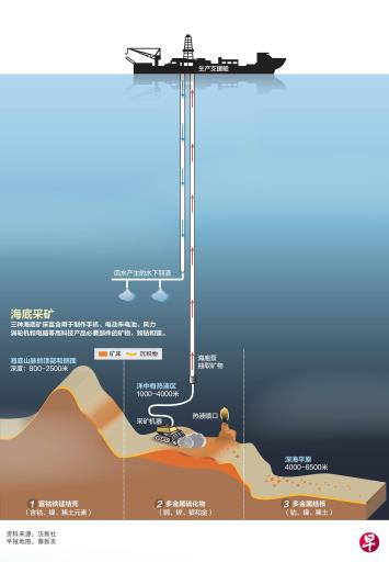 深海采矿是指从深度超过200米的海床开采固体矿产资源。全球海底富含金、银、铜、钴和镍等矿物和金属,据信蕴藏量可满足全球数十年甚至数百年的需求。
