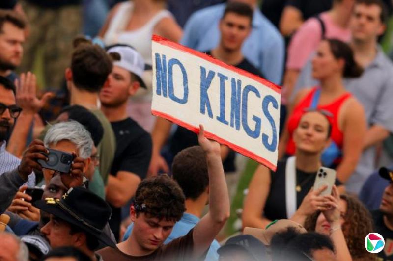 在阅兵仪式开始前几个小时,数十万美国人聚集在纽约、芝加哥、洛杉矶等地举行反特朗普的“无王”示威。