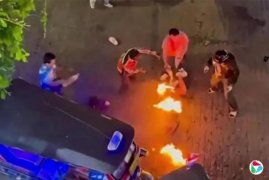 《星报》报道,这起事件发生在星期四(8月7日)晚上10时左右,据报道,施袭者是一名前拳击手,他从后面靠近两人,把稀释剂(thiner)倒在两人身上后点火。