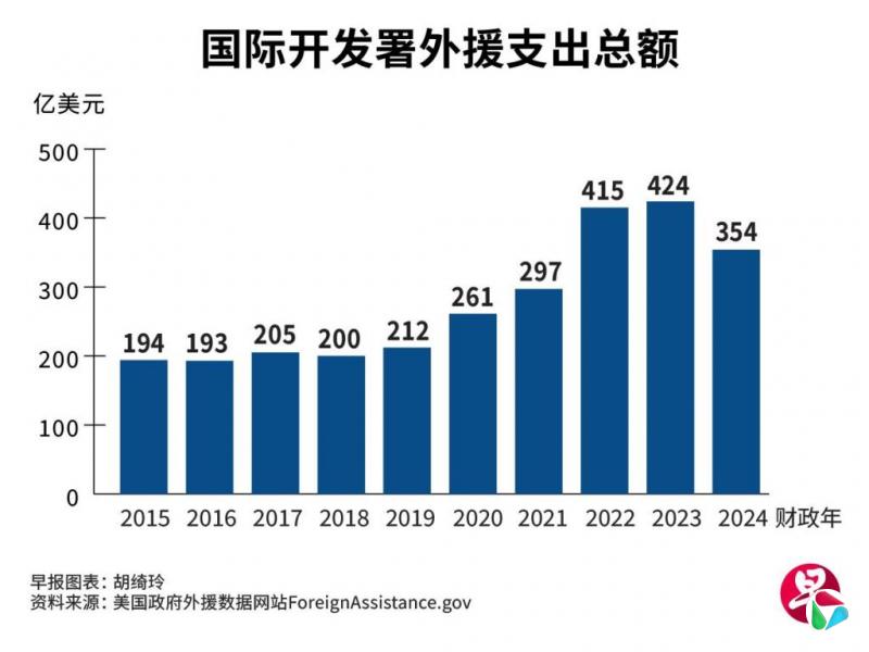 据美国政府网站数据,过去25年,美国国际开发署平均每年支出约230亿美元。近年因各地战乱,支出略有上升,但以2024年拜登总统任期最后一年为例,那一年的总支出达354亿美元,只占美国政府年度总支出的不到1%。