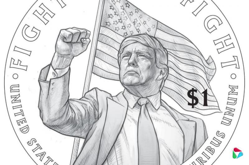 美财政部周五(10月3日)发布的草图中,纪念币的正面为特朗普的侧面头像,背面则显示特朗普在美国国旗面前高举右臂握紧拳头,硬币上方写着“战斗(Fight)、战斗、战斗”的字样。这是他去年竞选期间险遭枪击后,向支持者示意的经典画面。
