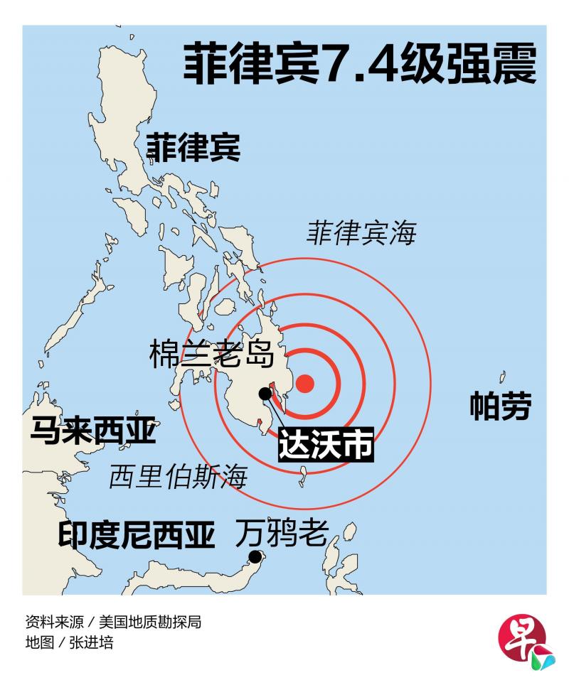 菲律宾地震局早前警告,此次强烈近海地震袭击棉兰老岛东达沃省马奈镇附近海域,可能造成破坏并引发余震??。