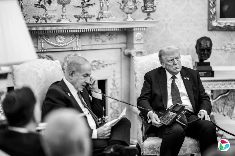 9月29日,内坦亚胡到白宫会见特朗普。白宫事后发布照片显示,特朗普在椭圆形办公室内板着脸扶着一台电话,坐在他旁边的内坦亚胡正在讲电话,手中握着一张纸。