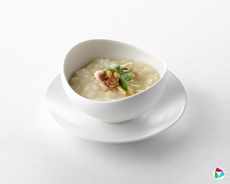 中韩交流晚宴前菜养生粥。(韩国总统府提供)