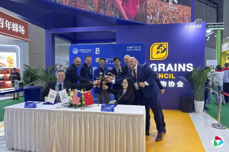 美国谷物协会全球主席威尔逊(Mark Wilson)星期四在进博会现场见证中美企业达成合作后,在场边告诉我,一批高粱已经装船,正在运往中国途中。“希望这是个好兆头,以后有更多货物运来中国。”