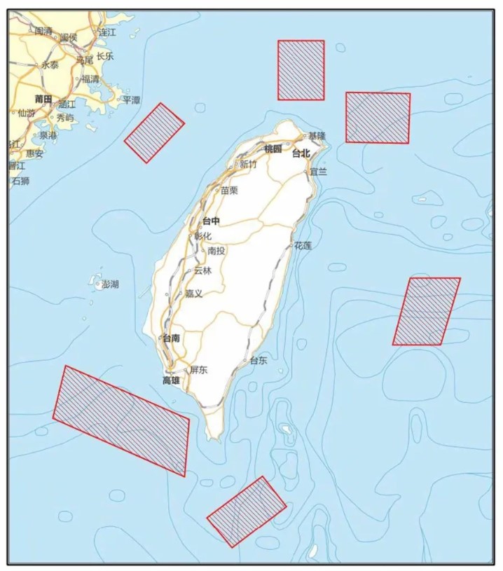 《中国时报》报道也指出,比起佩洛西2022年访台及2023年4月环台包围演习,此次军演区域更大,更逼近台湾,分八个区域将所有台湾本岛及外岛团团包围。
