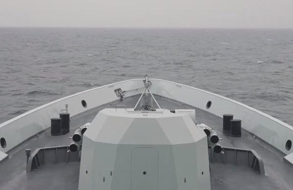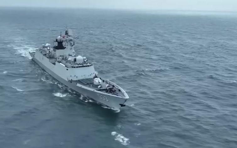 中国大陆官媒央视星期四(5月23日)发布参与解放军东部战区台湾周边演习的军舰照片。(央视新闻客户端)