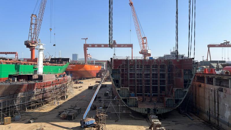 海工装备制造业在烟台蓬莱尤其发达,当地一家造船厂——蓬莱中柏京鲁船业有限公司(简称京鲁船业)由造渔船起步,经不断升级,今日已可打造不同类型商用货船,客户遍及欧美,也为新加坡客户造船。