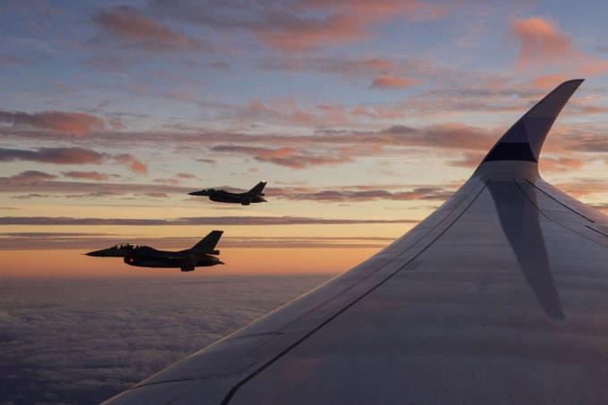 台湾军方派出四架F-16战机全程伴护赖清德及其访问代表团乘坐的华航专机,直到专机离开台湾防空识别区。