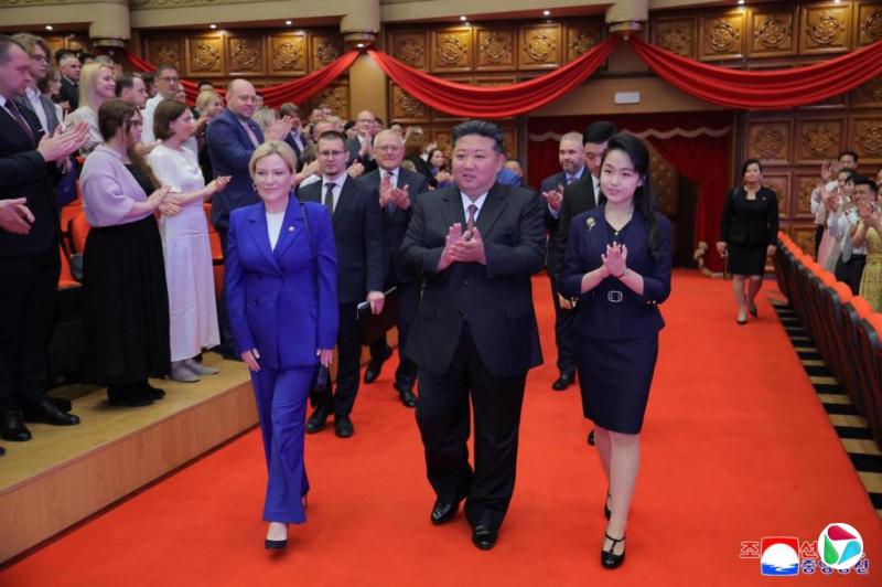 去年10月,金珠爱首次出现在外交场合,在父亲的引导下,与俄罗斯驻朝鲜大使亚历山大·马切戈拉耳语交流;今年5月苏联卫国战争胜利80周年之际,金珠爱陪同金正恩访问俄罗斯驻朝大使馆,隔月她又与金正恩和赴朝访问的俄罗斯文化部长柳比莫娃出席音乐会。