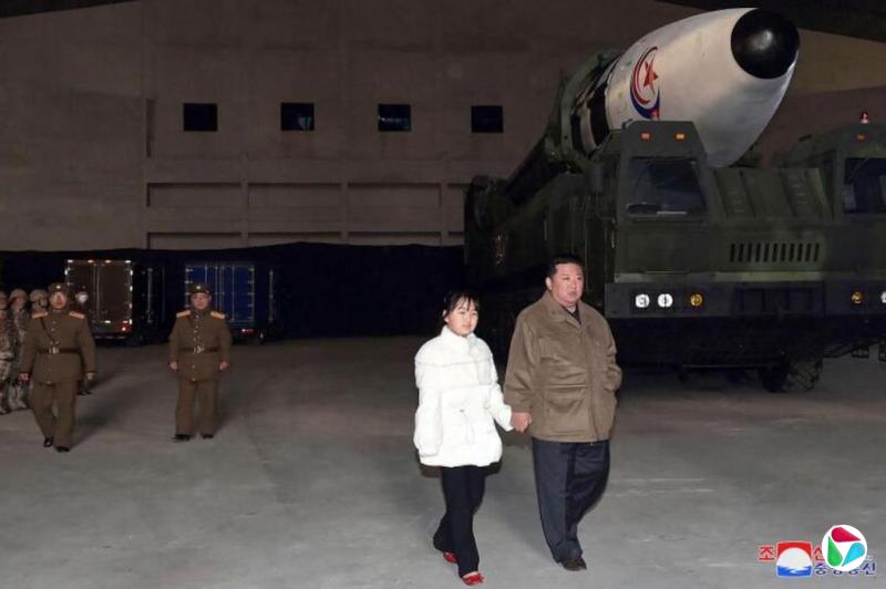 自那之后,几乎没有金珠爱更多消息了,直到2022年11月,她首次公开亮相,陪同金正恩参加了一场洲际弹道导弹发射测试。该导弹据说可以打到美国本土去。