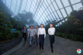 黄建发一行星期一(17日)抵新,由陈振声率领新方代表团接待。陈振声在脸书贴文透露,他们参观了滨海湾花园并共进晚餐,也就两国在日益不确定的世界中,共同面对的挑战进行交流。
